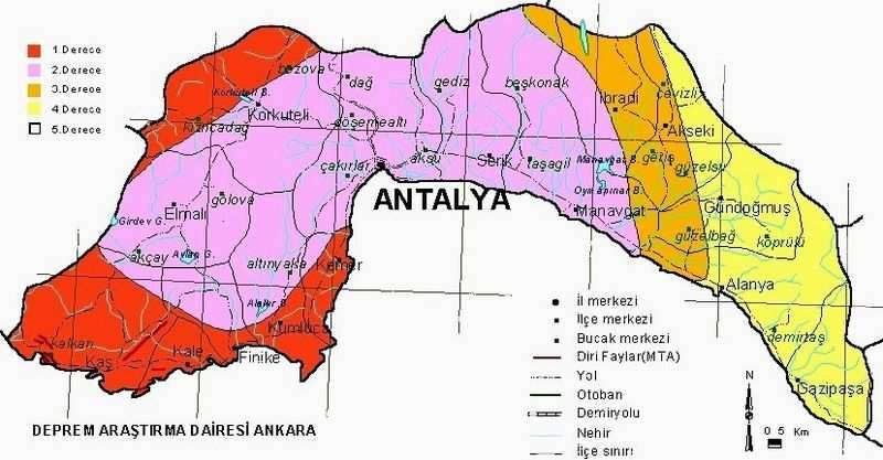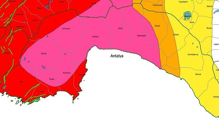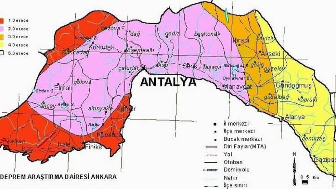 MTA'nın güncel fay hattı haritasına göre, Türkiye genelinde 485 diri fay tespit edilmiştir. Bu faylar, 45 il ve 110 ilçeyi doğrudan etkilemektedir. Antalya ili, doğrudan diri fay hattı üzerinde bulunmamakla birlikte, çevresindeki aktif fay hatları nedeniyle deprem riskine karşı dikkatli olunmalıdır.