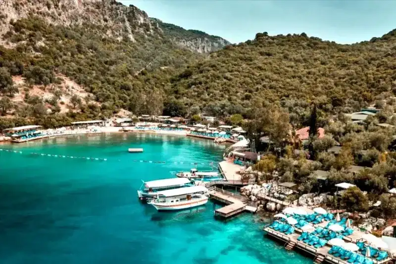 Kaş’ın en temiz ve sakin koylarından biri olan Limanağzı’na yalnızca teknelerle ulaşılabiliyor. Kara yolu olmaması sayesinde deniz suyu yıl boyunca berraklığını koruyor.