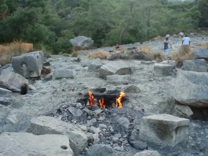 Antik Likya yolu üzerinde yer alan ve “Chimaera” adıyla bilinen bu bölgedeki taşların arasından çıkan alevler, antik dönemlerden bu yana yanmaya devam ediyor. Rivayetlere göre burası mitolojik bir canavarın yeri; ama bilim dünyası için bile bu olay tam anlamıyla açıklanamıyor. Metan ve hidrojen sülfür gibi gazların yer altından sızarak yandığı tahmin edilse de, bu gazların kaynağı ve sürekliliği hâlâ tartışma konusu.