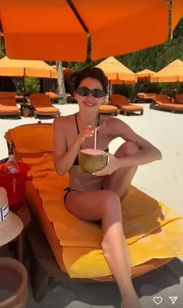 Siyah bikinisiyle kamera karşısına geçen Cavadzade, elinde hindistan ceviziyle poz verdi. Sosyal meydadan bu karesini paylaşan Nesrin Cavadzade takipçilerini gülümsetti.