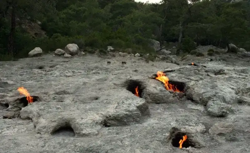 Kemer ilçesinin Çıralı bölgesinde bulunan Yanartaş, doğal olarak yanan kayalıklarıyla dünyada benzeri az görülen bir doğa harikası. Binlerce yıldır sönmeyen bu alevler, Likya mitolojisine göre Bellerophontes'in öldürdüğü canavar Kimera’nın nefesinden kalan ateş olarak biliniyor.