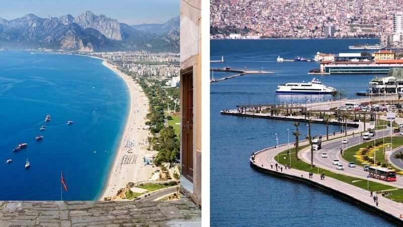 İzmir ve Antalya'yı birbirinden ayıran özellikler şu şekilde listelenmiştir;