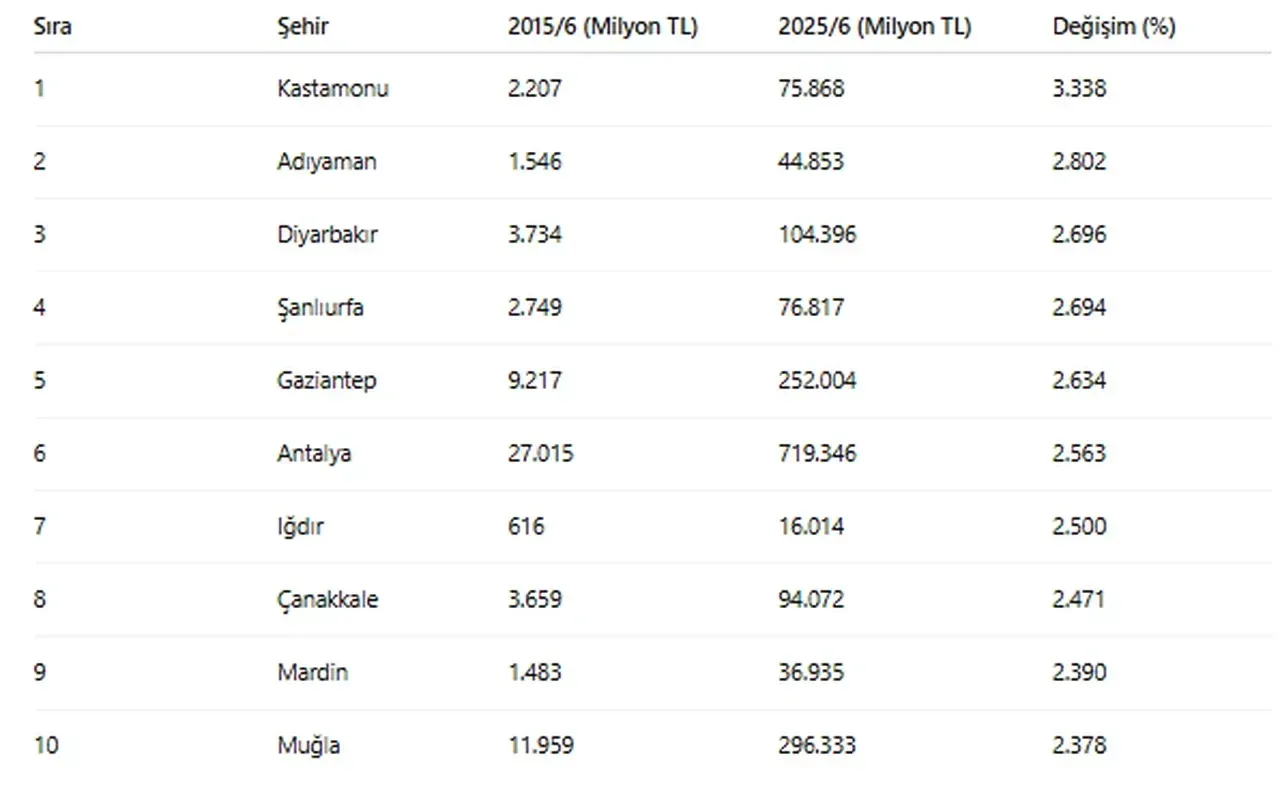 Bankacılık Düzenleme ve Denetleme Kurumu’nun (BDDK) açıkladığı veriler, son 10 yılda Türkiye’de mevduat açısından çarpıcı bir değişimi gözler önüne serdi. Listenin zirvesinde ise Kastamonu yer aldı.