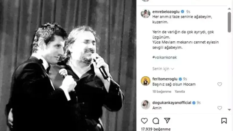 Geçtiğimiz gün sahnede yığılarak hayatını kaybeden ünlü sanatçıyla duygusal vedalar peş peşe gerçekleşti. Antalyaspor Teknik Direktörü Emre Belözoğlu kuzeni olan Volkan Konak için sosyal medya hesabından duygusal bir paylaşımda bulundu.
