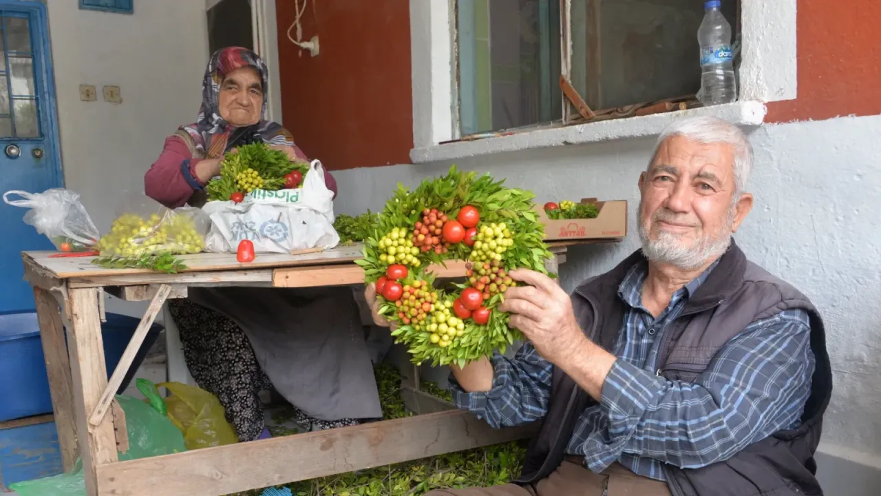 "Ayağımıza kadar bütün ürünleri getiriyorlar. 20 senedir sezonluk bu işi yapıyoruz. Ben de hanımımla beraber yapıyorum. Ben meyveleri hazırlıyorum. O da çelenk haline getiriyor. Keyif verici hem de para kazanıyoruz. Tanesini 50 TL'ye yapıyoruz"