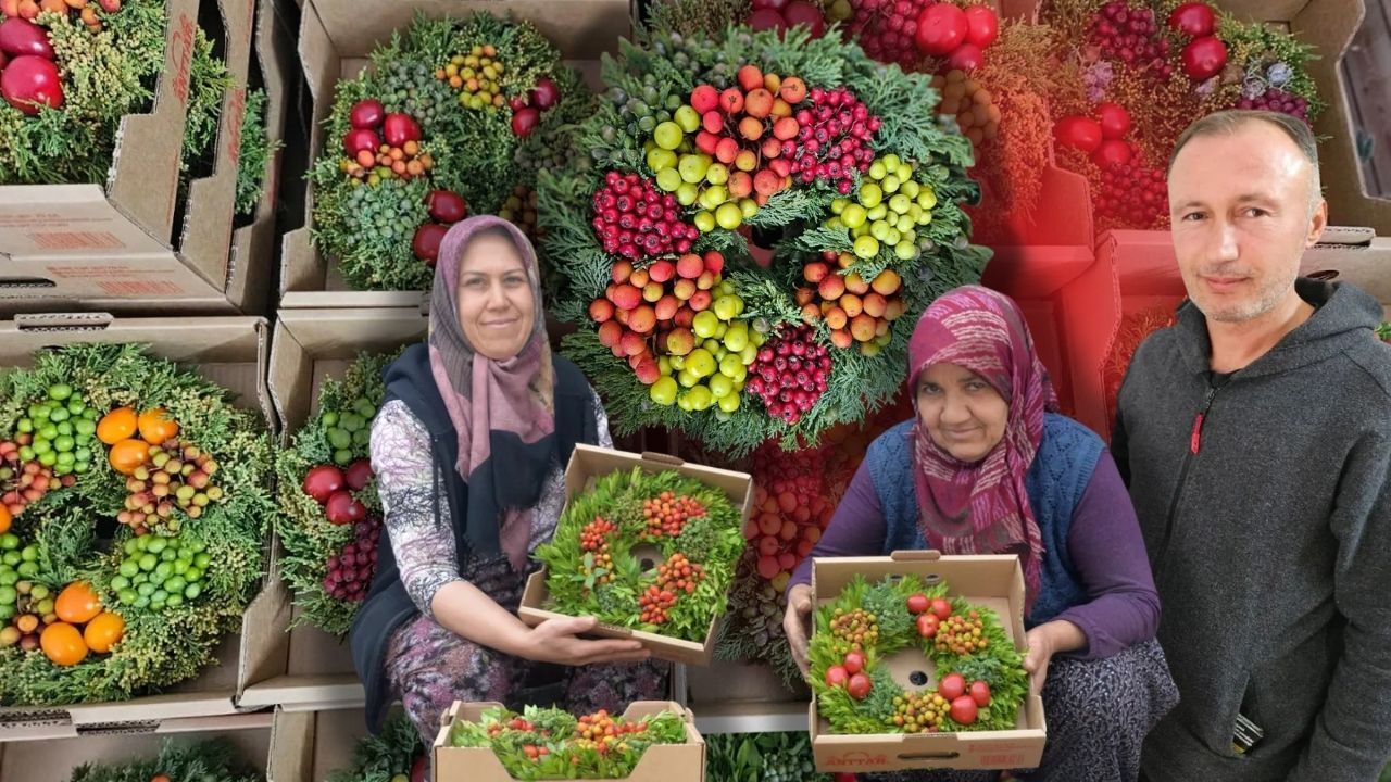 "Çelenk işini 2005 yılından beri yapıyoruz. Evlerin önüne sabah meyveler ve bitkiler dağıtılıyor. Akşamüzeri, öğleden sonra 14.00- 15.00 gibi yapılan çelenkler toplanıyor. Depoya getiriliyor. Depoda paketleniyor. Firma olarak bizim 100'e yakın ev var. Kadınlar bitki ve meyveleri sarıyor, öğleden sonra topluyoruz. Yaklaşık 2 günde bir TIR'la Hollanda ve Almanya'ya gönderiyoruz. Köydeki neredeyse hemen her evde 25 Ağustos'ta başlayıp aralık ayının ilk haftasının sonuna kadar kadınlar ve bazı erkekler bu işi yapıyor"