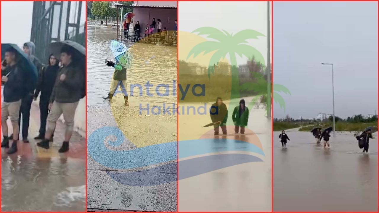 Antalya’da günlerdir yapılan meteorolojik uyarıların ardından dün akşam saatlerinde etkisini gösteren yağış ve fırtına hayatı felç etti. Uyarılar gözetilerek birçok ilçede okullar tatil edildi. Ancak kent merkezinde eğitime ara verilmemesi nedeniyle öğrenciler olumsuz hava koşullarına rağmen sabah saatlerinde okula gitmek için yollara düştü.