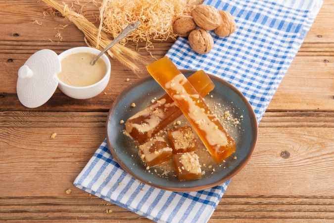 Antalya'nın meşhur kabak tatlısı, özel şerbetle hazırlanır ve üzerine bol tahin ve ceviz eklenerek servis edilir.