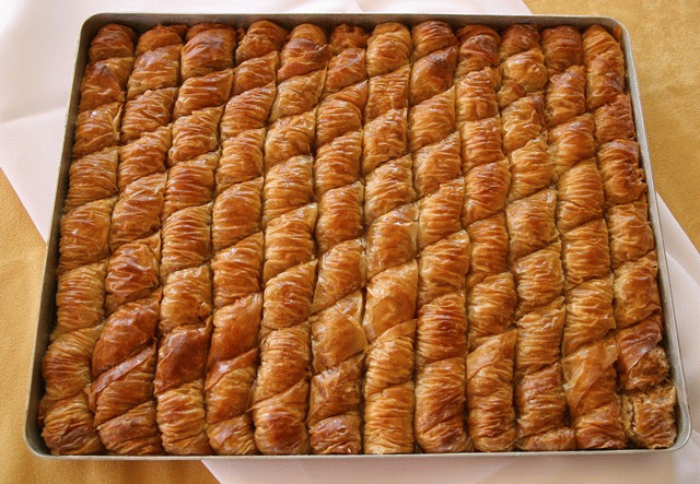 Geleneksel baklava tariflerinden farklı olarak, bu baklava elma ve tarçın ile hazırlanır. İç malzemesi pişirilirken zeytinyağı kullanılır ve sıcakken şerbet eklenir. Farklı ve lezzetli bir deneyim sunar.