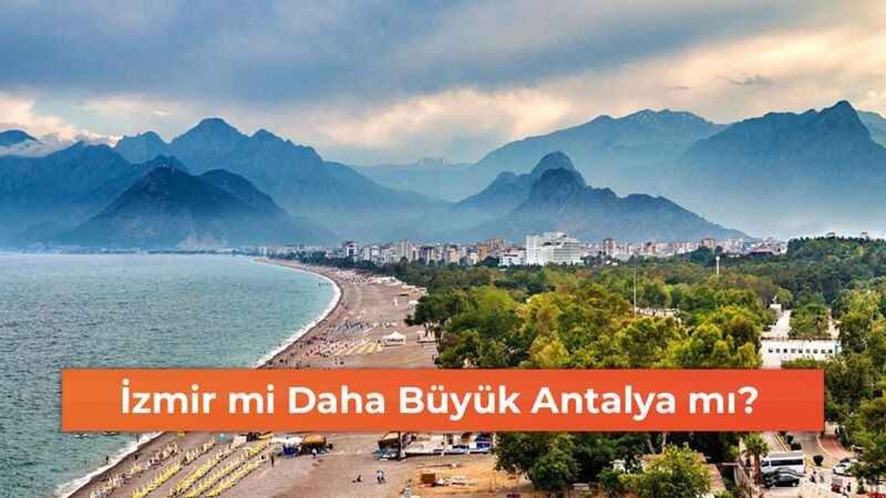 İzmir'in yüzölçümü ise, 7.200 km2'dir. Antalya'nın yüzölçümü ise, 20.512 km2'dir. Bu nedenle, Antalya, İzmir'den daha büyük bir yüzölçümüne sahiptir.