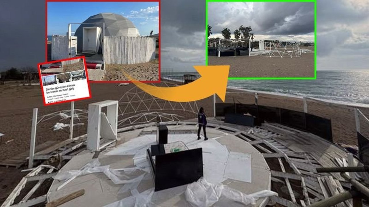 Muratpaşa ilçesindeki Lara Sahili’nde, denize 10 metre uzaklıkta, kumsalın üzerine inşa edilen ve “Kubbe” adı verilen kaçak yapı, hem vatandaşların hem de sosyal medyanın tepkisini çekmişti. İnternet üzerinden günlük 4 bin 560 TL’ye kiralanan yapının tanıtımları, sosyal medya ünlüleri aracılığıyla yapılmıştı.
