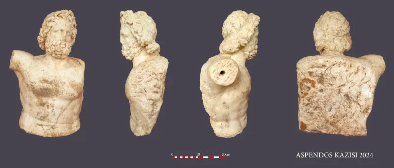 Doç. Dr. Mustafa Bilgin başkanlığında gerçekleştirilen kazı çalışmalarında, Roma İmparatorluk Dönemi'ne ait Zeus ve Aphrodite'in iki zarif heykeli keşfedildi. İki Katlı Dükkanlar-Stoa Kompleksi'nde bulunan bu heykeller, Antik Aspendos'un sanatsal ve estetik zenginliğini gözler önüne sererken, dönemin heykeltıraşlık tekniklerine dair önemli bilgiler sağladı.