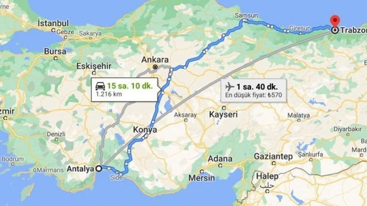 Antalya ile Trabzon Arası Kaç Kilometre?