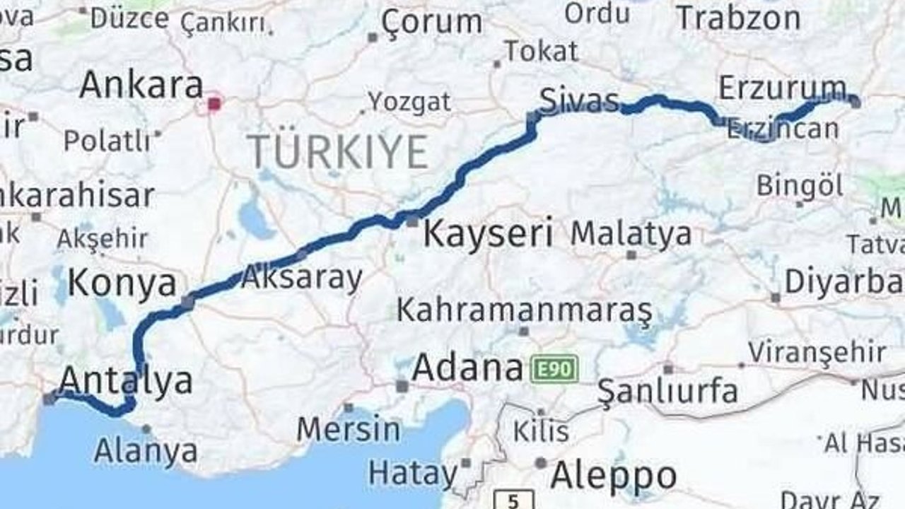 Antalya ve Erzurum Arası Mesafe Kaç Kilometre?