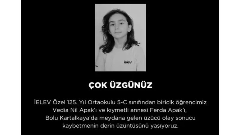 İELEV Okulları'nın sosyal medya hesabından yapılan paylaşımda, "Çok üzgünüz. İELEV Özel Ortaokulu 7-A sınıfından biricik öğrencimiz Pelin Güngör ve kıymetli annesi Burcu Güngör, babası Kıvanç Güngör ve kardeşi Kerem Güngör'ü Bolu Kartalkaya'da meydana gelen üzücü olay sonucu kaybetmenin derin üzüntüsünü yaşıyoruz. Kayıplarımıza Allahtan rahmet, başta Güngör ailesi olmak üzere tüm yakınlarına, arkadaşlarına ve sevenlerine sabır ve metanet diliyoruz" ifadeleri kullanıldı.
