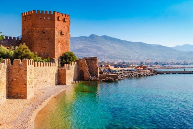 Alanya Limanı’nın hemen yanında yükselen Kızıl Kule, 13. yüzyılda Selçuklu Sultanı I. Alaeddin Keykubad tarafından yaptırılmıştır ve Alanya'nın simge yapılarından biridir. 33 metre yüksekliğindeki bu sekizgen kule, kırmızı tuğlalarla inşa edildiği için “Kızıl” ismini almıştır. Kule beş katlıdır ve içindeki merdivenlerle en tepeye çıkıldığında Alanya Körfezi’nin muhteşem manzarası gözler önüne serilir.
