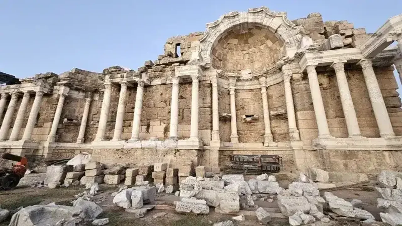 Antik Roma'nın suya hayat verdiği, Pamfilya'nın en görkemli anıtlarından biri: Side Anıtsal Çeşme, zamanı aşan ihtişamıyla hâlâ ayakta.