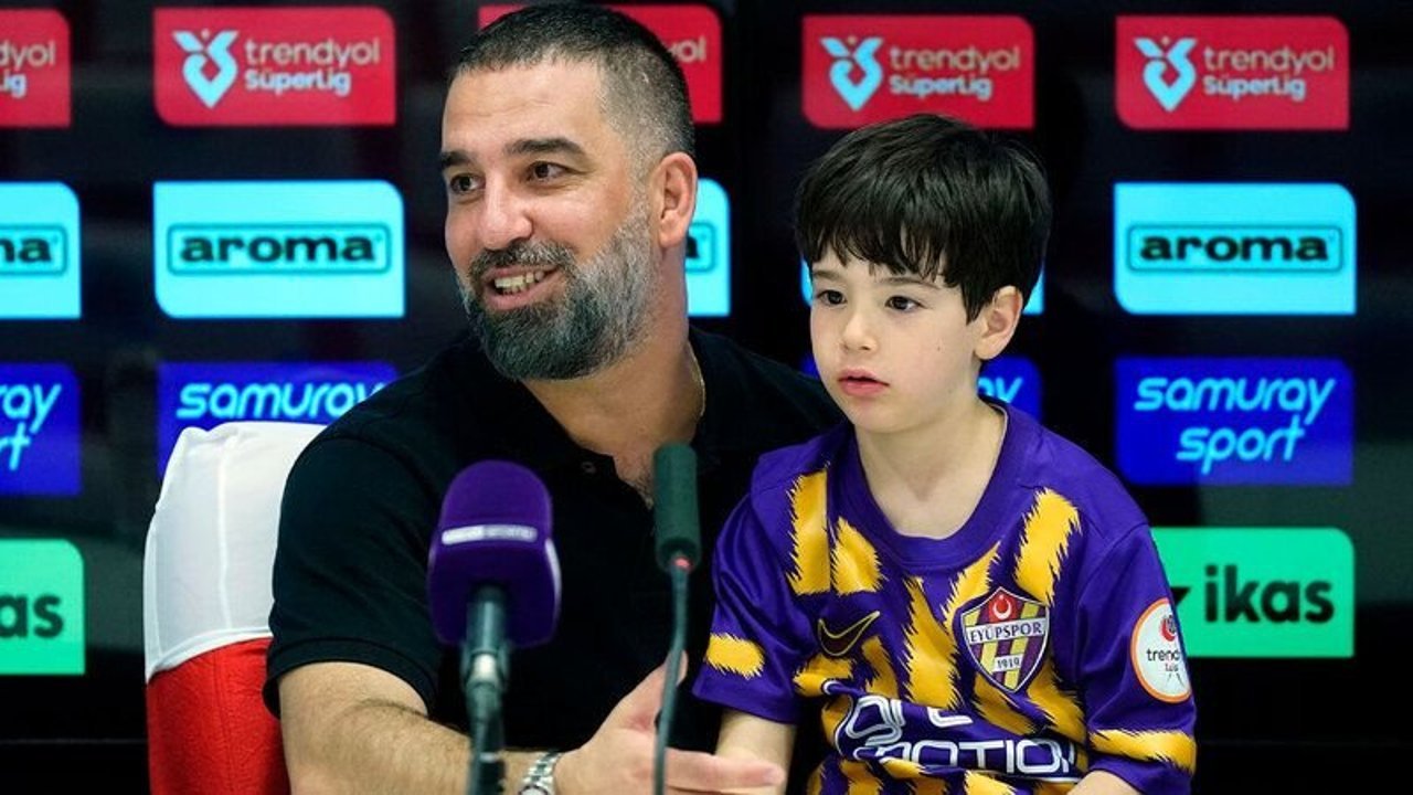 Arda Turan, son basın toplantısına oğlu Hamza ile birlikte çıktı.