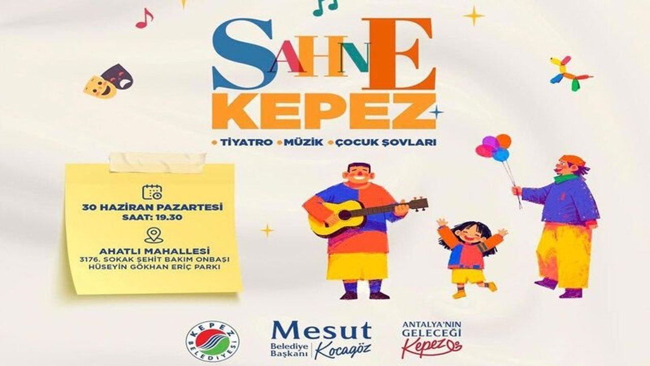Müzik dinletileri, tiyatro gösterileri, çocuk şovları ve eğlenceli etkinliklerin yer alacağı program, her yaştan vatandaşın katılımına açık olacak. “Sahne Kepez” etkinliklerinin ilki 30 Haziran Pazartesi günü saat 19.30’da Ahatlı Mahallesi’ndeki Şehit Bakım Onbaşı Hüseyin Gökhan Eriç Parkı’nda gerçekleştirilecek. Mahalle sakinleri, bu etkinlikte bir araya gelerek yazın ilk coşkusunu paylaşacak.