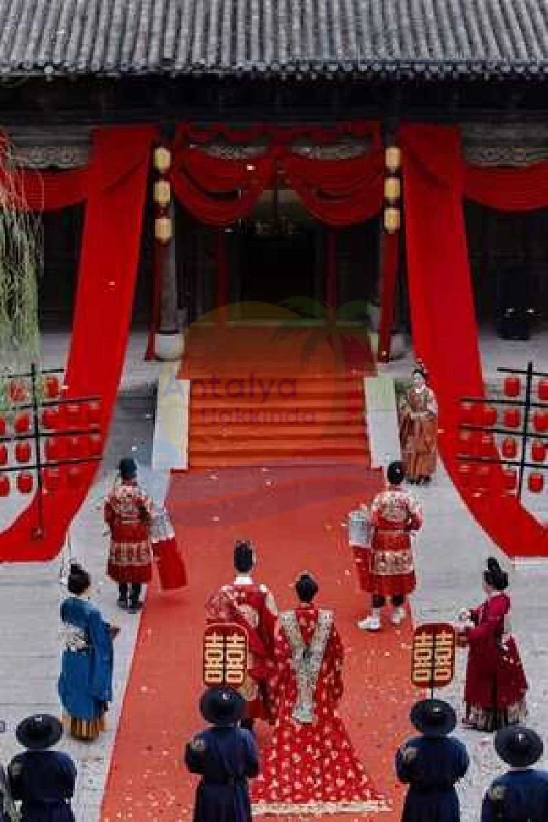 Çin’in geleneksel motifleriyle süslenen düğün alanı, danslar, ritüeller ve kırmızı ağırlıklı kostümlerle dikkat çekti. Özellikle gelinin kırmızı geleneksel kıyafetleri ve tören sırasında yapılan ritüeller, düğün videolarına yansıyan en ilgi çekici anlar oldu.