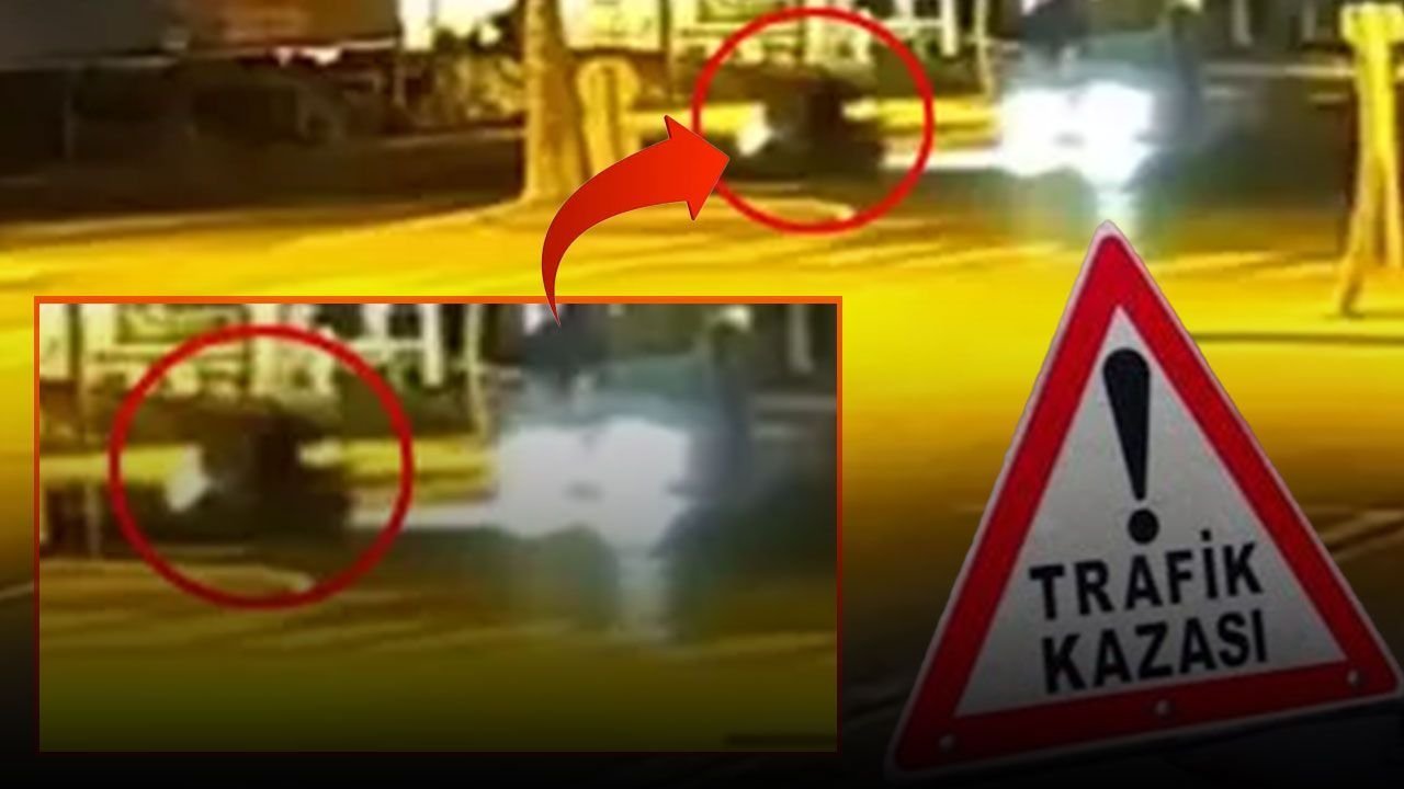 Güvenlik kamerasına yansıyan görüntülerde kavşaktan sola dönüş yapan motosikletliye arkadan gelen otomobilin çarpması yer aldı. Kazanın şiddetiyle motosikletten yola düşen sürücünün savrulduğu, otomobil sürücüsünün ise geri manevra yaparak olay yerinden kaçma anları kameraya yansıdı. (DHA)