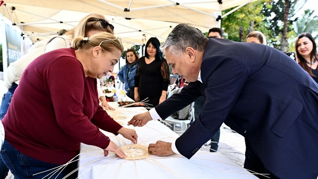 Atölyeye katılan Muratpaşa Belediye Başkanı Ümit Uysal da kadınlarla birlikte kapı süsü yapmayı deneyerek etkinliğe eşlik etti. Başkan Uysal, kadın kooperatiflerinin üretim süreçlerinde üstlendiği role dikkat çekerek,