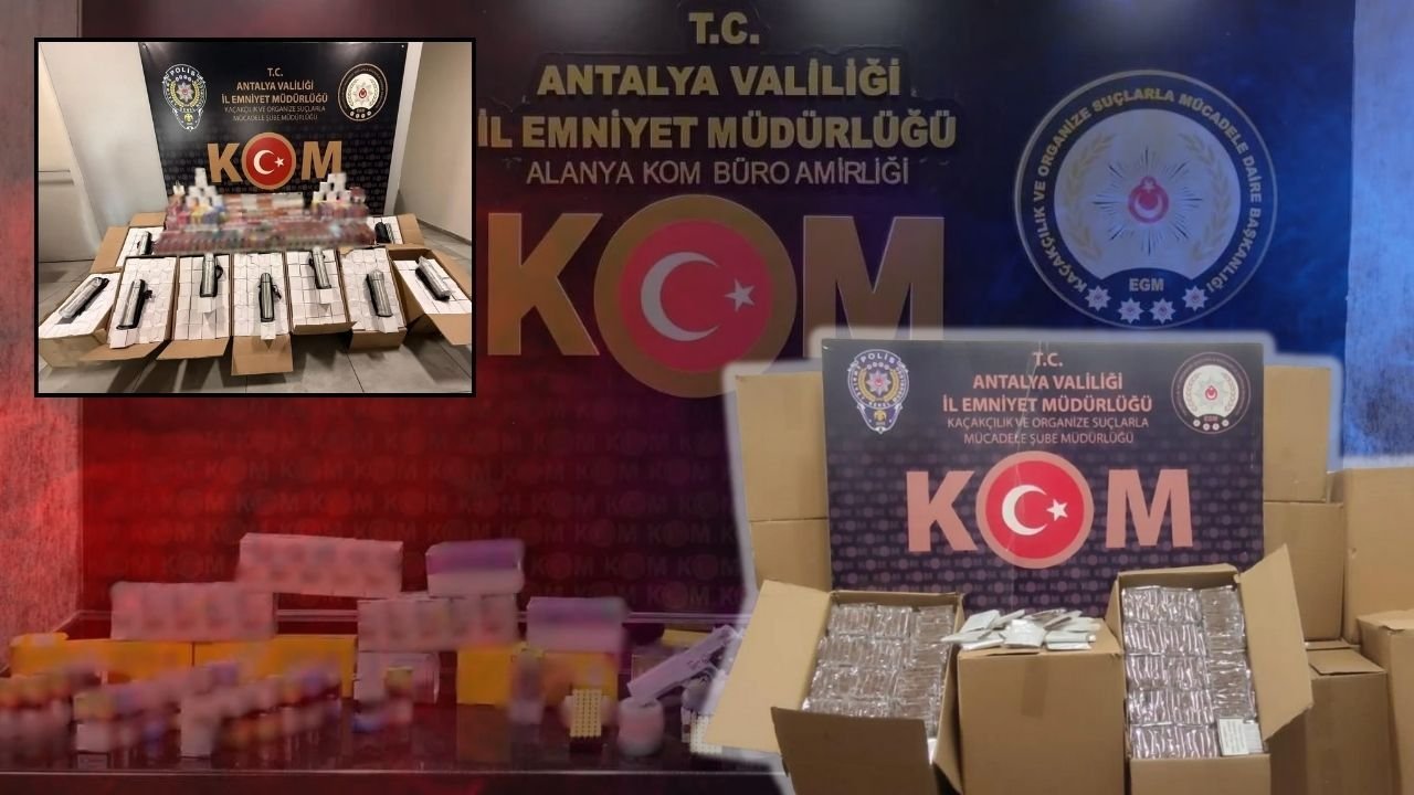 Kepez, Muratpaşa, Alanya ve Manavgat ilçelerinde yapılan operasyonlar neticesinde, iş yeri, depo ve ikametlerde yapılan aramalarda kaçak 5 milyon 677 bin 600 adet makaron, 867 adet elektronik sigara, 667 paket sigara, 412 kilogram tütün, 213 adet emtia ile 67 şişe içki ele geçirildi.