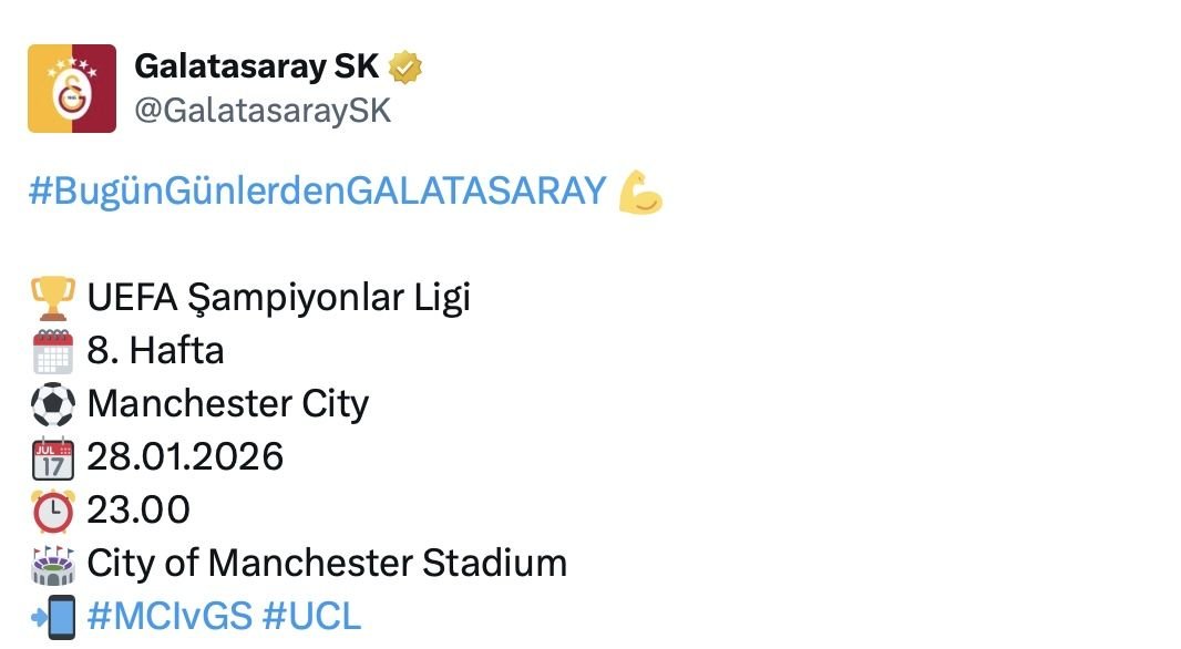 UEFA Şampiyonlar Ligi’nin 8. haftasında temsilcimiz Galatasaray zorlu deplasmanda İngiltere'nin önde gelen takımlarıdan Manchester City ile karşılaşıyor. Sarı-kırmızılı ekibin deplasmanda oynayacağı maçı futbol severler ne zaman, saat kaçta ve hangi kanalda?” sorularına yanıt arıyor..