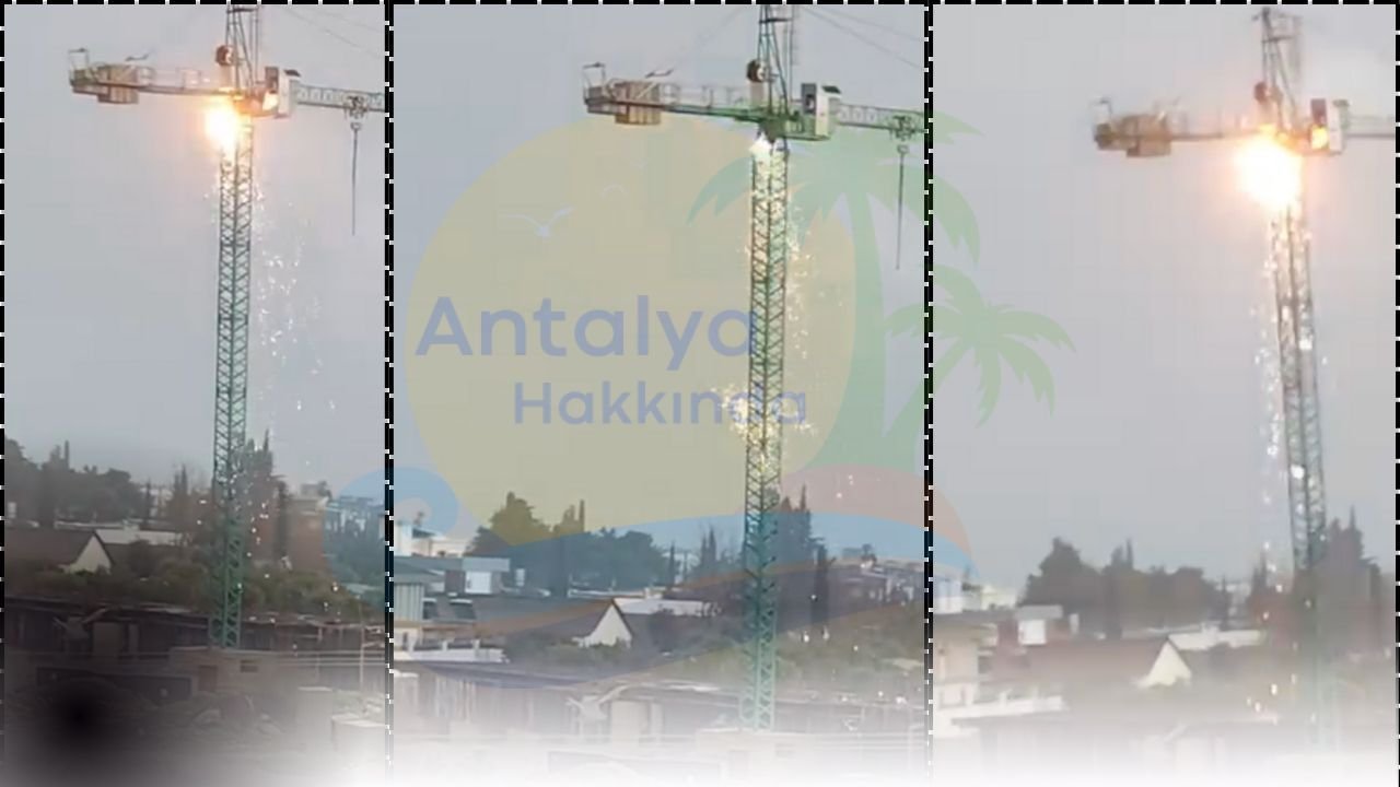 Antalya’da bir inşaat alanında bulunan vinç kulesinden kıvılcım çıktığı görüldü. Olay sırasında çevrede bulunan vatandaşlar kısa süreli panik yaşadı.