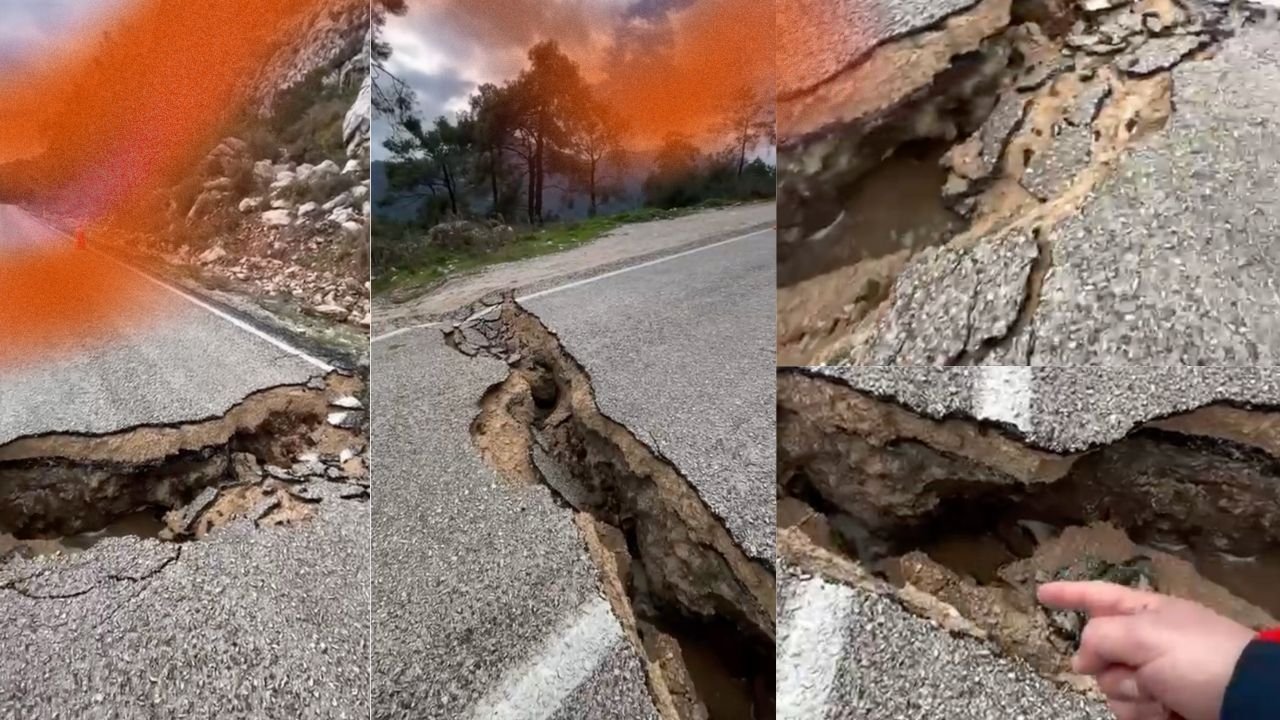 Vatandaşların cep telefonu kameralarıyla kaydettiği görüntülerde, yolun neredeyse ikiye ayrıldığı ve yarığın alt kısmından su aktığı görüldü. Yarığın, son günlerde etkili olan yağışların ardından oluştuğu değerlendirilirken, olayın kesin nedeni henüz netlik kazanmadı.