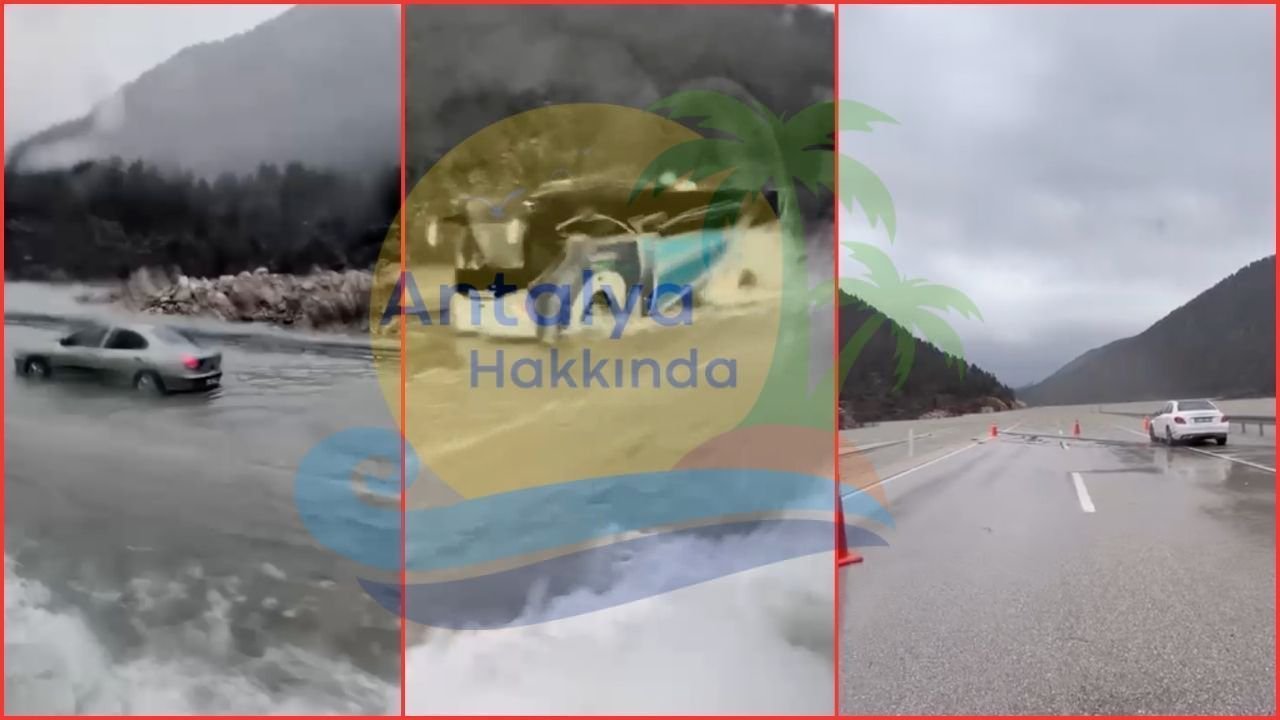 Antalya’da uzun süredir aralıklarla devam eden sağanak yağış, kent genelinde hayatı zorlaştırmayı sürdürüyor. Özellikle kırsal kesimler ile yüksek rakımlı bölgelerde etkisini artıran yağışlar, hem şehir içi hem de şehirlerarası ulaşımda aksamalara neden oldu. Bir vatandaş tarafından cep telefonu kamerasıyla kaydedilen görüntülerde, Antalya-Konya yolunda bir bölgenin suyla kaplandığı görüldü. Araçların ilerlemekte güçlük çektiği anlar kameraya yansıdı.