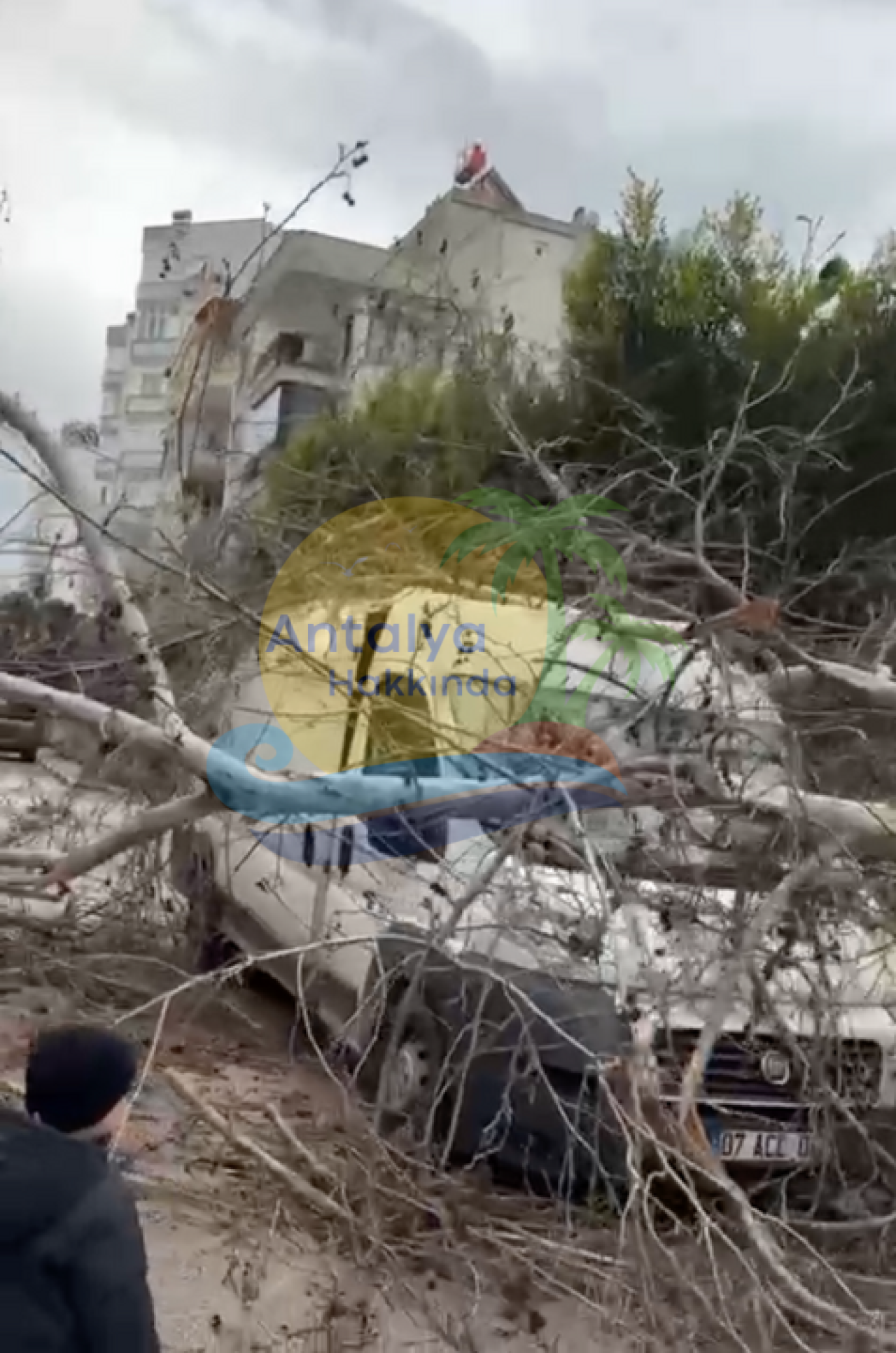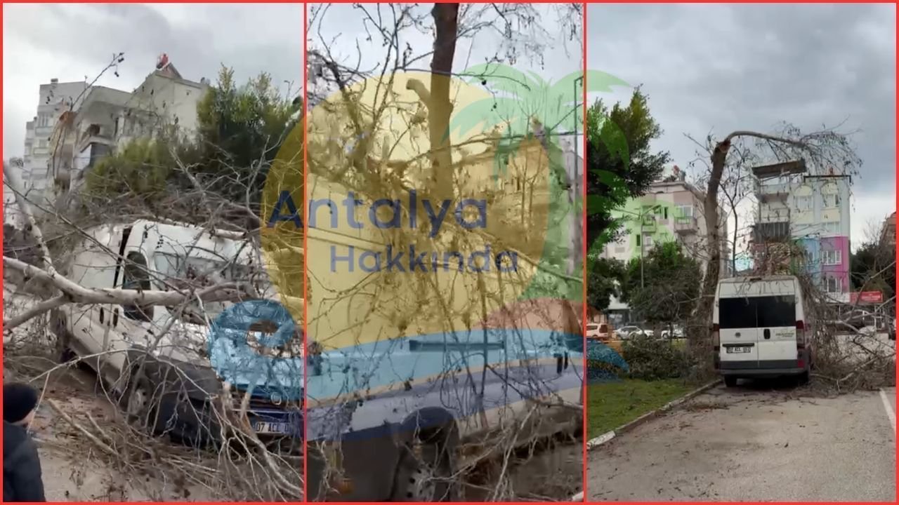 Antalya’da günlerdir etkisini sürdüren şiddetli rüzgar ve olumsuz hava koşulları kent genelinde hasara neden olmaya devam ediyor. Son olarak Muratpaşa ilçesine bağlı bir mahallede büyük bir ağaç kökünden sökülerek park halindeki panelvan aracın üzerine devrildi. Devrilen ağacın altında kalan araçta ciddi maddi hasar oluştu. Olay sırasında araç içerisinde kimsenin bulunmaması olası bir faciayı önledi.