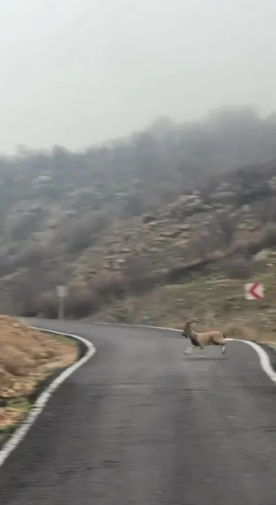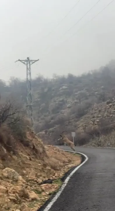 Hasankeyf’e bağlı Kara köyü yolunda aracıyla ilerleyen Abdulhakim Kaçmaz, virajı döndüğü sırada nesli koruma altında olan dağ keçilerinin aniden yola çıktığını gördü. Soğukkanlılığını koruyarak hemen frene basan Kaçmaz, aracını durdurarak muhtemel bir kazanın önüne geçti. Dağ keçilerinin ürkek ama hızlı adımlarla asfalt yoldan karşıya geçişini bekleyen duyarlı sürücü, o anları cep telefonuyla da kayıt altına aldı. Görüntülerde keçilerin yolu güvenle geçtikten sonra dik yamaçlara tırmanarak gözden kaybolduğu anlar yer aldı. Kaçmaz, yaban hayatının korunması için tüm sürücüleri bu güzergahlarda daha dikkatli olmaya davet etti.