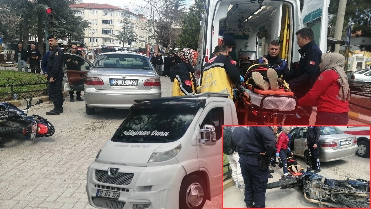 Kaza, saat 14.40 sıralarında Pazar Yukarı Mahallesi Gazipaşa Caddesi üzerinde bulunan Prof. Dr. Türkan Atayalvaç Kavşağı’nda meydana geldi. Edinilen bilgilere göre, 80 yaşındaki H.G. idaresindeki 32 YK 427 plakalı Fiat marka otomobil ile E.K. yönetimindeki 32 AEB 404 plakalı motosiklet kavşak içerisinde çarpıştı.