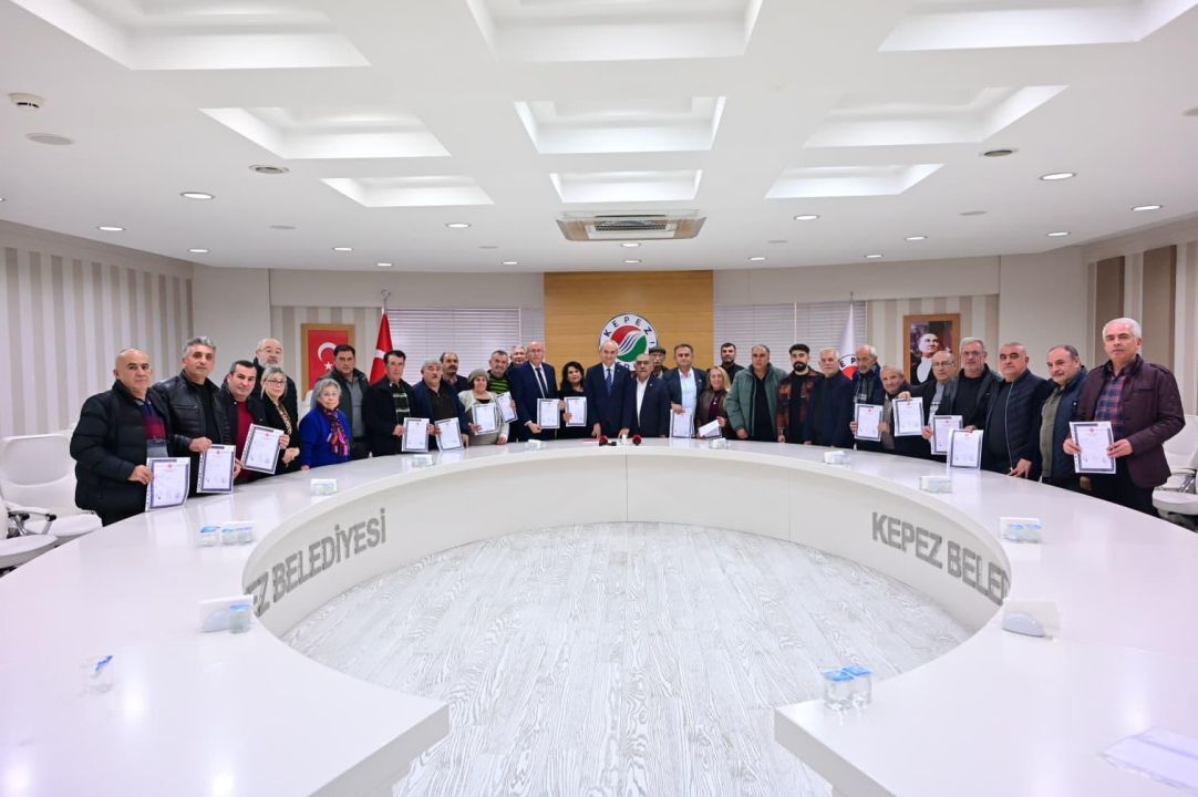 Kepez Belediyesi, bir yandan yol, park ve çevre düzenlemeleriyle vatandaşların yaşam kalitesini artırırken, diğer yandan modern ve planlı kentleşmenin temellerini güçlendiren uygulamaları hayata geçirmeye devam ediyor. İlçenin uzun yıllardır çözüm bekleyen sorunlarını kararlılıkla ele alan Kepez Belediyesi, bu kapsamda önemli bir imar sorununu daha çözüme kavuşturdu. Barış, Kazım Karabekir, Yavuz Selim ve Esentepe mahallelerinde yaklaşık 20 yıldır devam eden imar sorunu, yapılan çalışmaların ardından sona erdi. İmar uygulamasının tamamlanmasıyla birlikte, hak sahipleri imar tapusuna kavuştu. Kepez Belediyesi hizmet binasında düzenlenen tapu teslim töreninde Başkan Mesut Kocagöz, hak sahipleriyle bir araya gelerek tapularını takdim etti. Barış Mahallesi Muhtarı İsmet Keskin, Kazım Karabekir Mahallesi Muhtarı Süleyman Demirel, Yavuz Selim Mahallesi Muhtarı Ekrem Aslan ve Esentepe Mahallesi Muhtarı Bekir Yılmaz’ın katılımıyla hak sahipleri tapularına kavuştu.