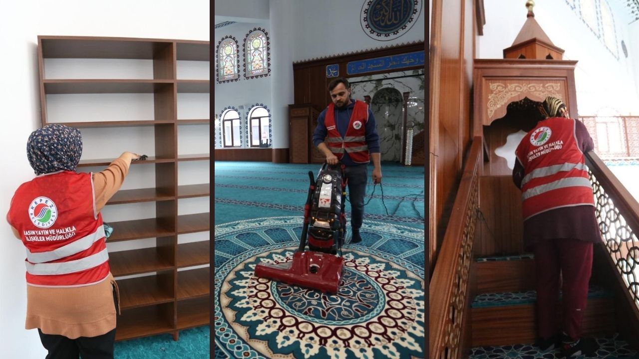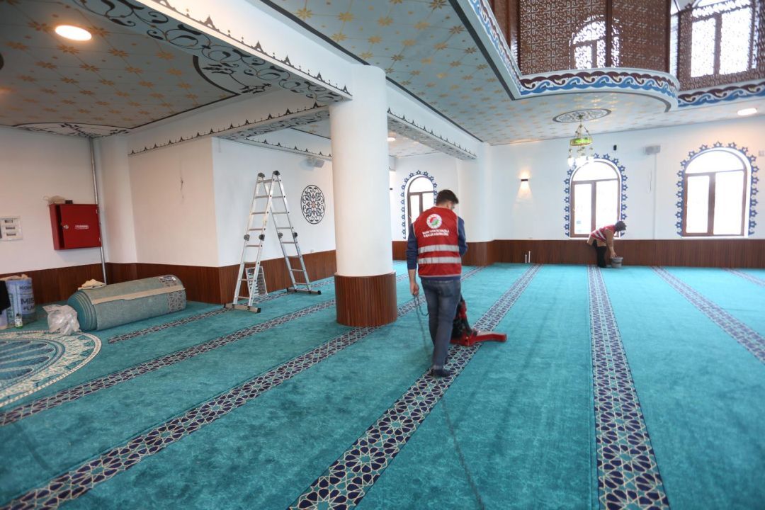Basın Yayın ve Halkla İlişkiler Müdürlüğü’ne bağlı ekipler, camilerin iç mekanlarında detaylı temizlik yaparken. cemaatin namaz kıldığı halılar özel ekipmanlarla yıkanarak hijyenik hale getirildi, mihrap, minber ve kürsü bölümleri özenle temizlendi. Cami girişlerinde bulunan ayakkabılıklar yoğun kullanım nedeniyle kirlenen raflar temizlenip dezenfekte edilirken, düzenli bir görünüm sağlandı.
