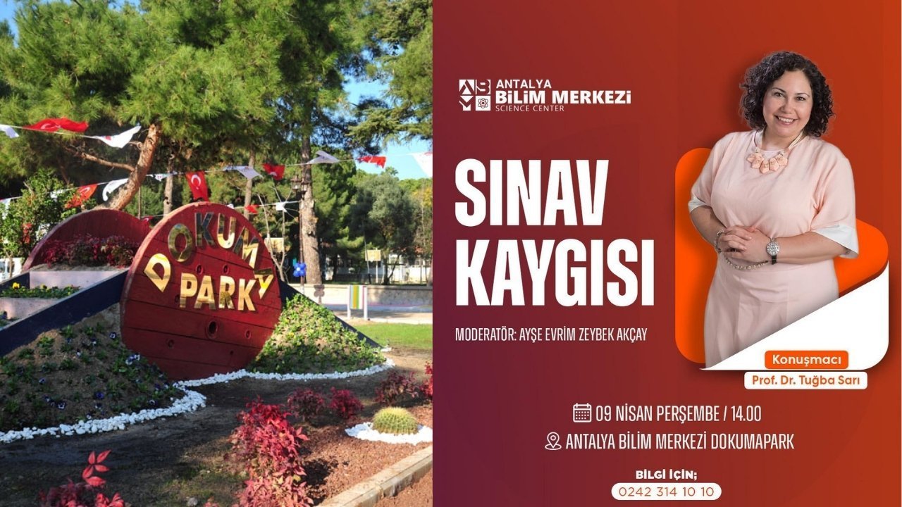“Sınav Kaygısı” söyleşisi, 9 Nisan Perşembe günü saat 14.00’te Dokumapark’ta Antalya Bilim Merkezi’nde gerçekleştirilecek. Katılımın ücretsiz olduğu etkinlikte, sınav sürecini daha bilinçli ve sağlıklı geçirmek isteyen herkes bilgi edinme fırsatı bulacak.