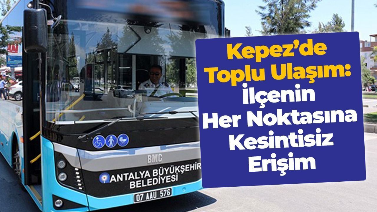 Böylesine geniş bir yerleşim alanına sahip olan Kepez’de toplu ulaşım, Antalya Büyükşehir Belediyesi’ne bağlı resmi ve özel toplu taşıma araçları tarafından sağlanıyor. İlçe sakinleri, her mahalleye ulaşabilen çok yönlü bir hat sistemi sayesinde şehir içi mobiliteye hızlıca dahil olabiliyor.
