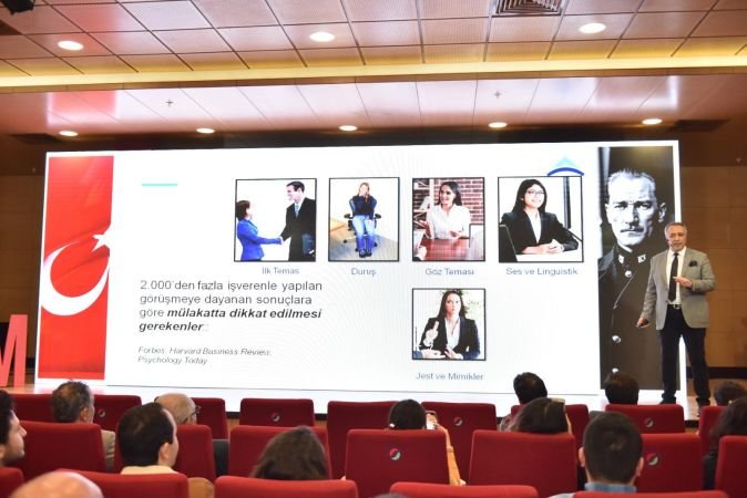 Kaplan, bilinç dışımızın her zaman bizi ele verdiğini belirterek, mülakatta bilinç dışının izlediği ipuçlarına dikkat edilmesi gerektiğini söyledi. "Bilinç dışımız dürüsttür" diyerek, mülakatlarda vücut diline ve hareketlere dikkat edilmesi gerektiğine değindi. Mülakata gittiğinizde, vücudunuzu sürekli olarak kontrol etmeyi ve burun, ağız gibi bölgelere dokunmamayı tavsiye etti. Murat Kaplan’ın semineri, katılımcılara mülakatlarda başarılı olabilmek için gereken stratejiler ve beden diliyle ilgili önemli bilgiler sundu.