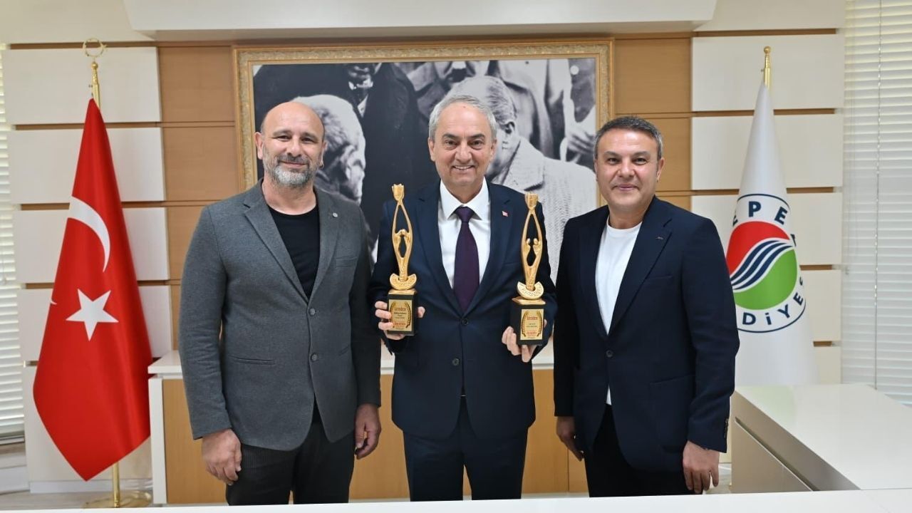 Ziyaret sırasında Kepez Kent Tiyatrosu Genel Sanat Yönetmeni Gökhan Avkıran ve Sanat Akademisi Çocuk ve Gençlik Senfoni Orkestrası Şefi Engin Beslek, ödülleri Kepez Belediye Başkanı Mesut Kocagöz’e takdim ettiler.