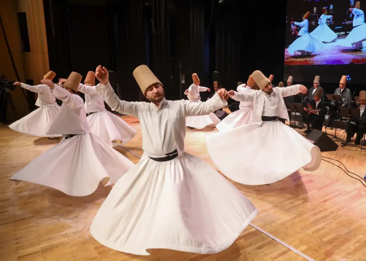 Tasavvufun birlik, aşk ve insân-ı kâmil anlayışı çerçevesinde gerçekleştirilen törende, semânın anlam dünyası izleyiciyle buluştu. Tasavvufun birlik, aşk ve insân-ı kâmil anlayışı çerçevesinde gerçekleştirilen törende, semânın anlam dünyası da izleyiciyle buluştu. Programda Antalya Büyükşehir Belediyesi İsmail Baha Sürelsan Konservatuvarı Tasavvuf Müziği Topluluğu tarafından Mevlevi bestekârlardan Abdülbâki Nâsır Dede’nin Acembûselik Mevlevi Ayin-i Şerifi ve Semâ Mukabelesi icra edildi. Töreninin başında okunan Nâ’t-ı Şerîfi, Türk Sanat Müziği İcrâ Heyeti ve Tasavvuf Müziği Topluluğu Şefi Celâl Abacı, sonunda okunan Kur’ân-ı Kerîm’i Abdülkadir Aktürk seslendirdi. Baş taksimi Neyzenbaşı Umut Murat Aytekin, son taksimi Kanûnî Alperen Kozak yaptı. Kudümzenbaşı Aygün Altınbaş, Postnişîn Mahmut Sülükçü’ydü. Şeb-i Arûs Semâ Töreni, ilgiyle izlendi.