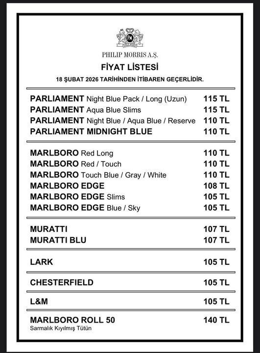 Tütün ürünlerinde son dönemde art arda gelen fiyat artışlarına bir yenisi daha eklendi. Sektör kaynaklarından edinilen bilgilere göre, JTI grubunun yaptığı zammın ardından bu kez Philip Morris (PM) grubuna ait ürünlerin fiyatları güncellendi. Philip Morris A.Ş. tarafından paylaşılan yeni fiyat listesi 18 Şubat 2026 tarihi itibarıyla yürürlüğe girdi. Güncellenen fiyatlar raflara yansırken, artışta döviz kurlarındaki dalgalanma ve üretim maliyetlerindeki yükselişin etkili olduğu ifade edildi.