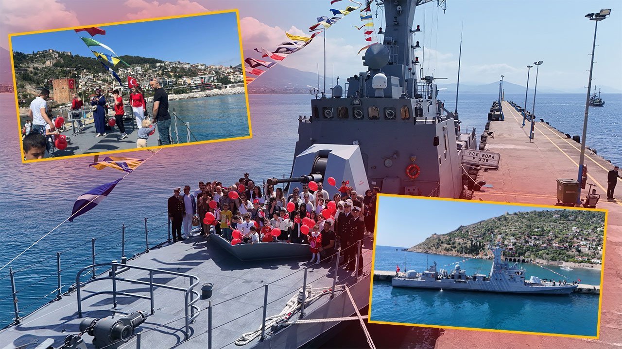 Türk bayraklarıyla donatılan liman çevresinde bayram coşkusu yaşandı. Çocuklar gemiyi ziyaret etmenin heyecanını yaşarken, 23 Nisan ruhuna uygun görüntüler ortaya çıktı. Kılıç sınıfı hücumbot TCG BORA’nın ziyarete açılması, özellikle çocuklar için günün en ilgi çeken etkinliklerinden biri olarak öne çıktı. Alanya’da düzenlenen gemi ziyareti programı, gün boyunca yoğun katılımla devam etti
