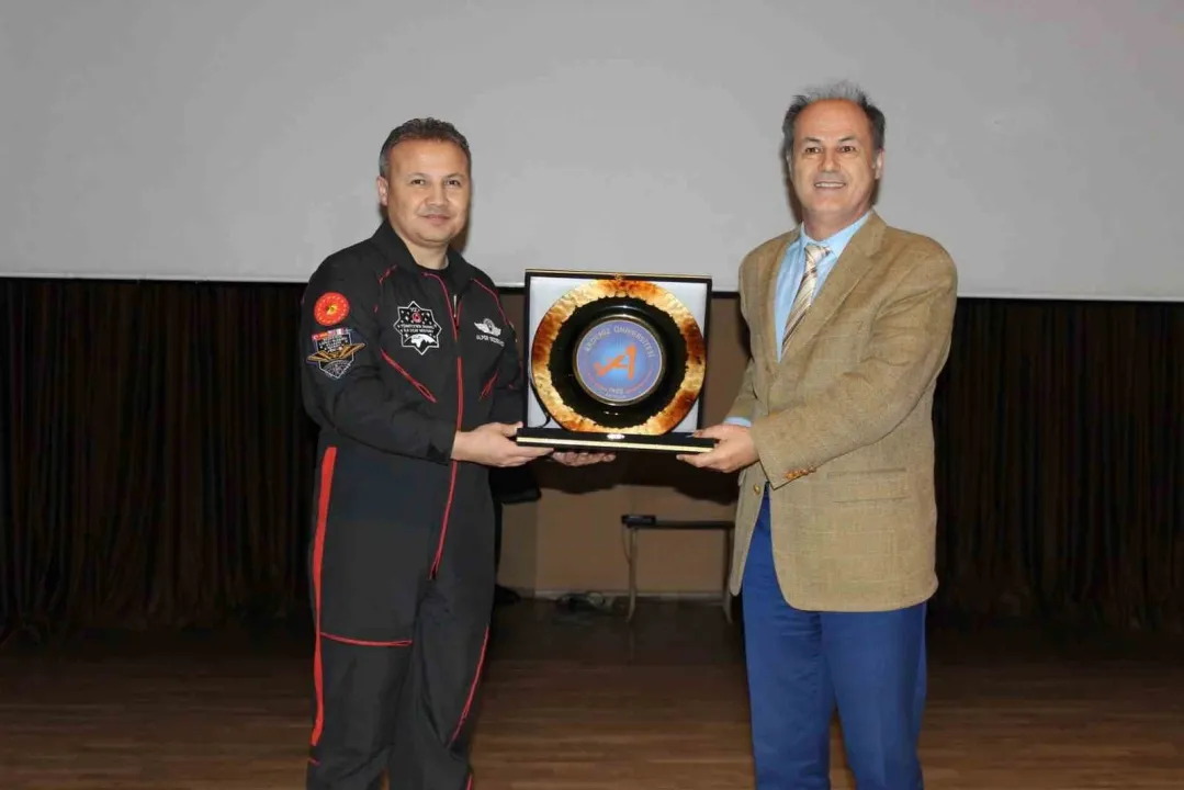 "Türkiye’nin insanlı ilk uzay misyonunu tamamlamamızdan bu yana geçen 24 aylık sürenin içerisinde Antalya’da bugün 239. şehir değişimi ile 601. programı yapıyoruz. Geçen yıl tesadüfen yine şubat ayının içerisinde, 25 Şubat’ta GÜNKAF kapsamında üniversitenizde bulundum. Bugün IAC 2026 Antalya’nın hazırlık sürecinde kampüs buluşmalarımız kapsamında tekrar burada olmaktan mutluluk duyuyorum. Bizim bu kadar kısa zaman dilimi içerisinde bu kadar fazla şehir değişimiyle, bu kadar fazla program yapma çabamızın sebebi sizlere bir lütufta bulunmak değil; bu bizim boynumuzun borcu. Çünkü Türkiye Cumhuriyeti, tarihindeki insanlı ilk uzay misyonunu bir Türk vatandaşının uzaya gidip 22 gün macera yaşaması için gerçekleştirmedi"